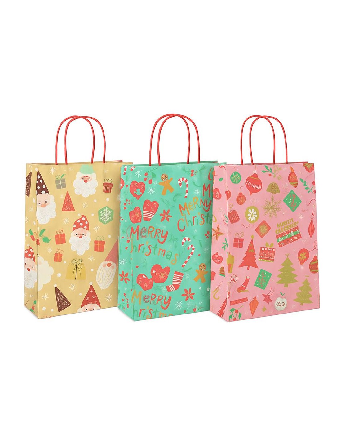 Χριστουγεννιάτικες χάρτινες τσάντες 128 gsm. Σε 3 σχέδια. Διαστάσεις: Υ23x18x8εκ.