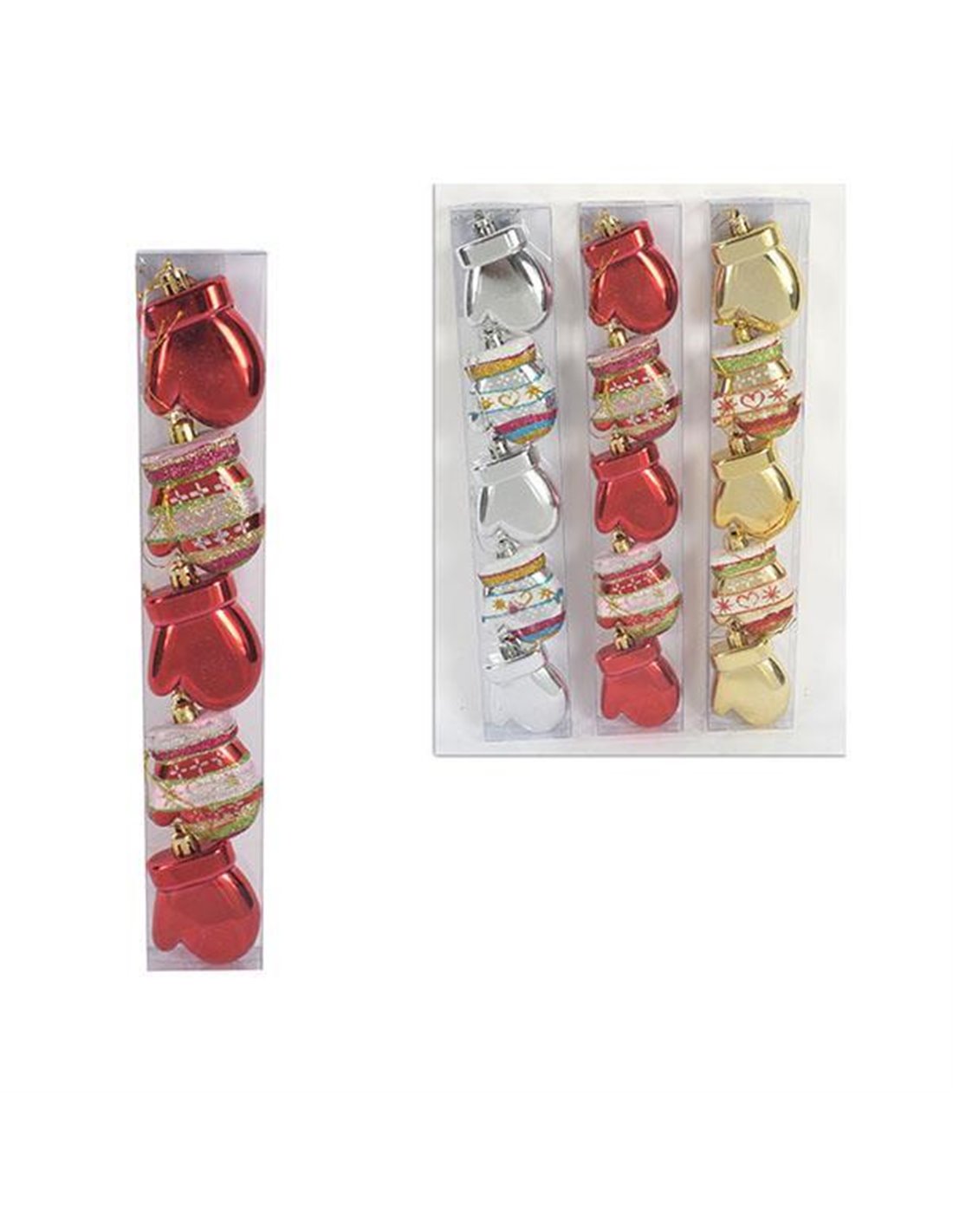 Χριστουγεννιάτικα στολίδια γαντάκια σε σετ των 5 τεμαχίων. Σε συσκευασία δώρου από διάφανο Pvc. Διαστάσεις : Υ7x5x2εκ