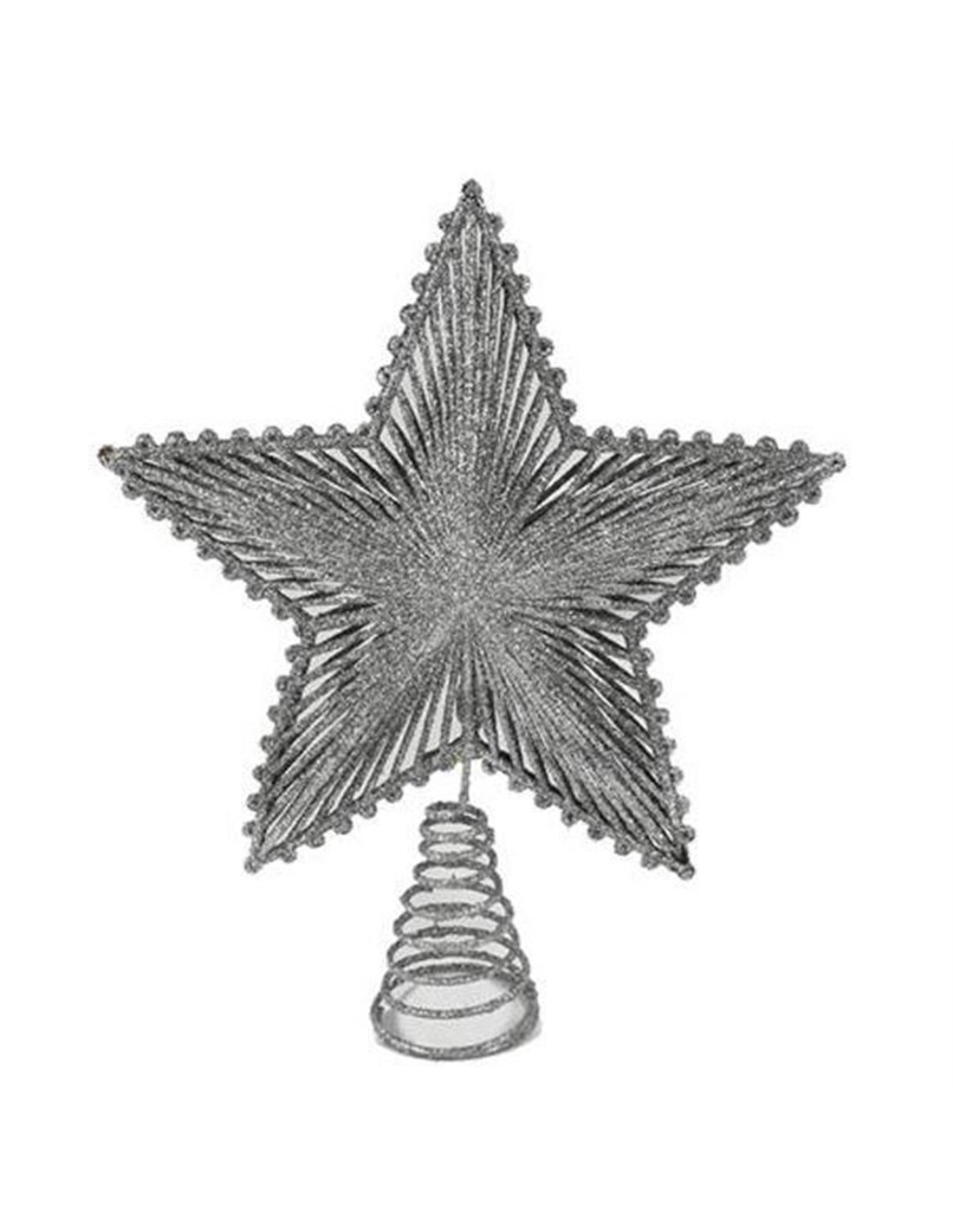 Χριστουγεννιάτικη κορυφή δέντρου, αστέρι με glitter σε ασημί χρώμα. Διαστάσεις: Y26x5x20εκ. Διαστάσεις συσκευασίας: Υ30x5x21εκ.
