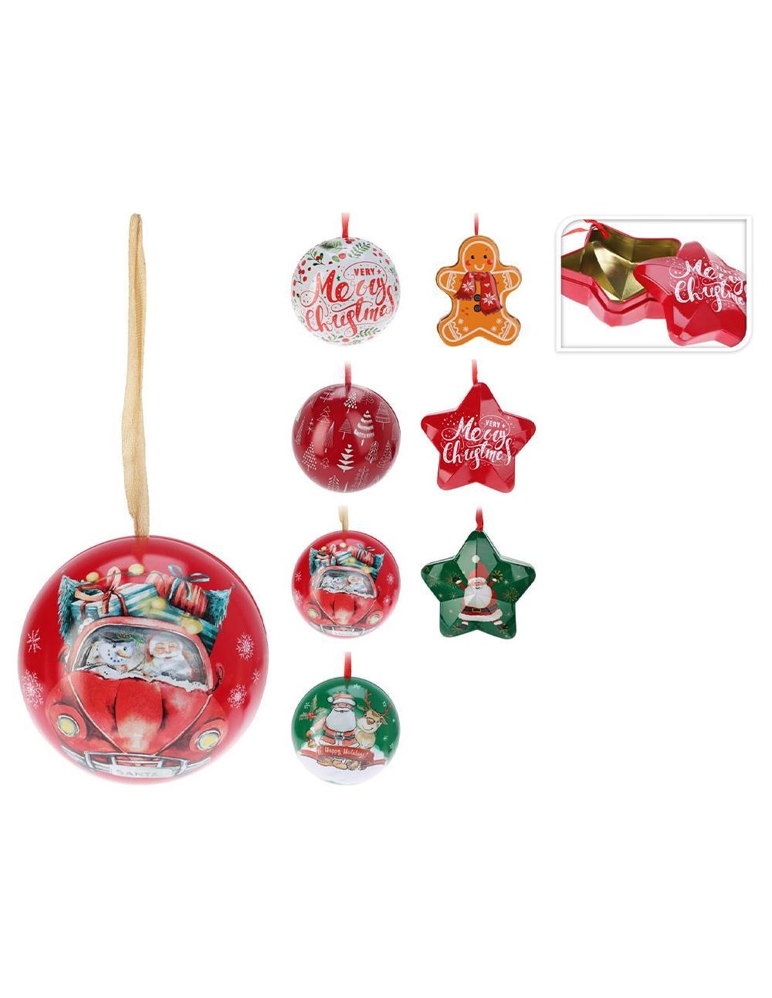 Το σετ χριστουγεννιάτικων στολιδιών σε διάφορα σχέδια, προσθέτοντας μια ρετρό και γιορτινή αισθητική στον εορταστικό σας διάκοσμο. Κατασκευασμένα από ανθεκτικό μέταλλο, αυτά τα κουτάκια μπορούν να χρησιμοποιηθούν είτε ως χριστουγεννιάτικα στολίδια για το δέντρο, είτε για αποθήκευση μικρών δώρων και γλυκών. Το μεταλλικό υλικό και οι χριστουγεννιάτικες απεικονίσεις τους τα καθιστούν μια πρακτική και ταυτόχρονα διακοσμητική λύση για τις γιορτές. Διαστάσεις: 10x10x4,5εκ.