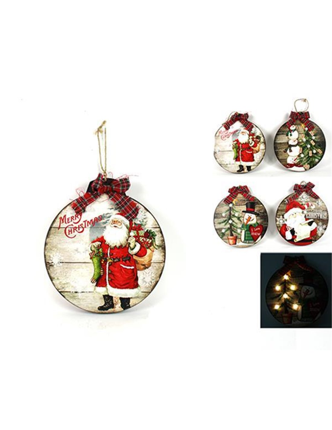 Χριστουγεννιάτικες φωτιζόμενες μπάλες σε 4 διαφορετικά σχέδια Συνδυάστε τες για έναν ξεχωριστό χριστουγεννιάτικο στολισμό αλλά και τη διακόσμηση του δέντρου σας. Τυχαία επιλογή σχεδίου. Διαστάσεις: ύψος 30,5x2,5x29εκ. Οι μπαταρίες δεν περιλαμβάνονται.