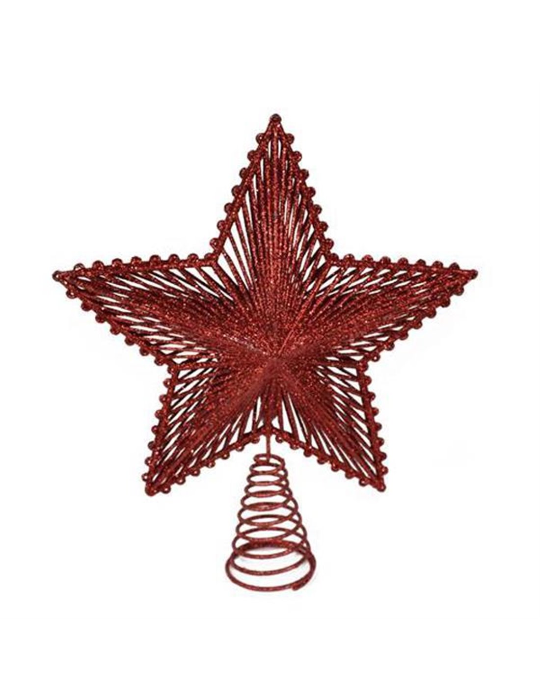 Χριστουγεννιάτικη κορυφή δέντρου, αστέρι με glitter σε κόκκινο χρώμα. Διαστάσεις: Y26x5x20εκ. Διαστάσεις συσκευασίας: Υ30x5x21εκ.