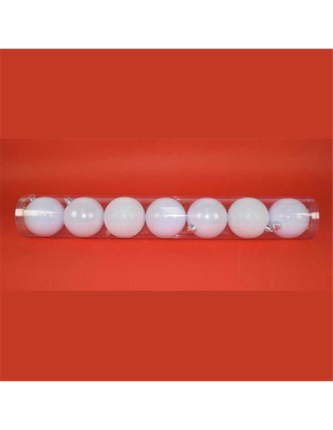 Χριστουγεννιάτικες μπάλες λευκές Ø8εκ. σε 3 υφές σετ 7 τεμαχίων.