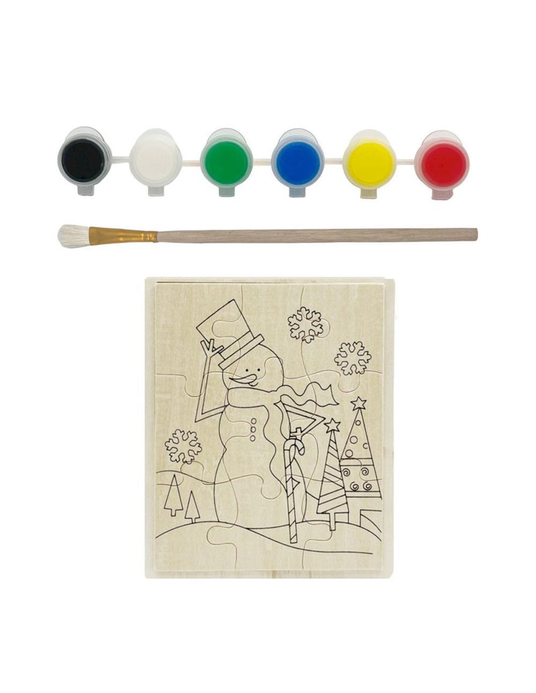 Παζλ ξύλινο - σετ ζωγραφικής Υ15,5x20x5εκ. χιονάνθρωπος με 6 νερομπογιές και πινέλο