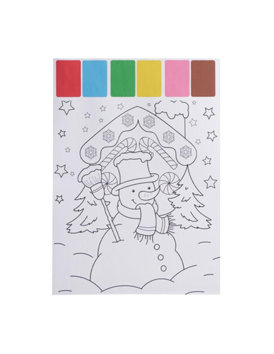 Το σετ ζωγραφικής με νερομπογιές Χιονάνθρωπος περιλαμβάνει 6 σελίδες με διαφορετικά χριστουγεννιάτικα σχέδια, 6 χρώματα νερομπογιάς και 1 πινέλο, σε χάρτινο φάκελο. Ιδανικό για δημιουργική απασχόληση παιδιών στις γιορτές. Διαστάσεις Υ32,3x22,5x0,2εκ.