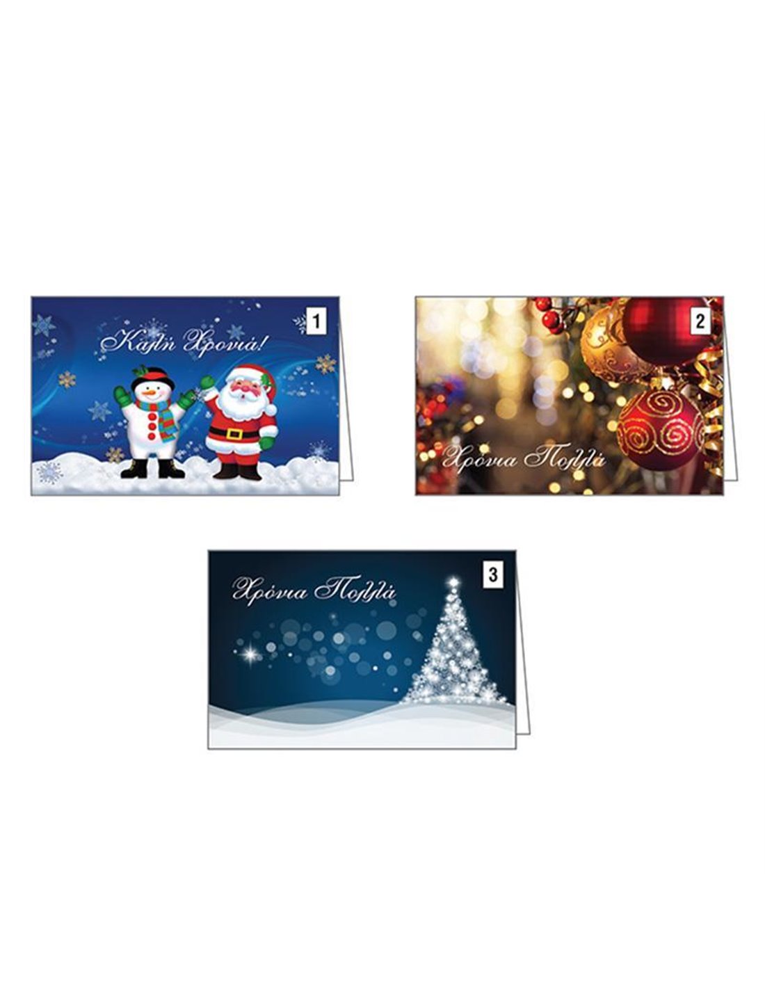 Ευχετήριες κάρτες χριστουγεννιάτικες με φάκελο. Διπλή κάρτα με διαστάσεις (κλειστή) 7x10,5εκ., (ανοιχτή) 10,5x14εκ. Κοκτέηλ 3 σχέδια.