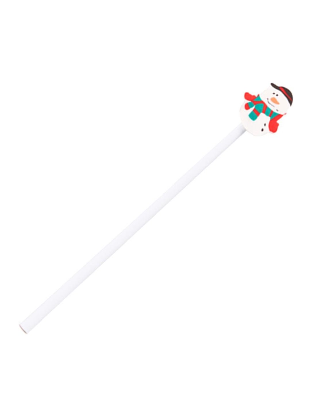 Χριστουγεννιάτικο μολύβι λευκό με σβήστρα χιονάνθρωπος. Η σβήστρα είναι τυλιγμένη, ώστε να χρησιμποιηθεί σαν δωράκι.