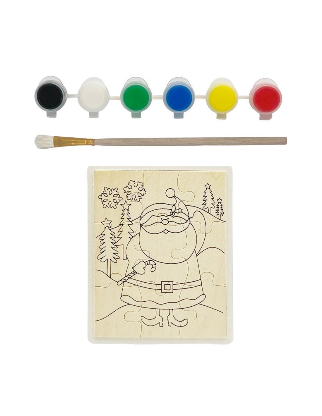 Το σετ ζωγραφικής-παζλ περιλαμβάνει έναν ξύλινο Άγιο Βασίλη με διαστάσεις Υ15,5x20x5εκ. Το σετ συνοδεύεται από 6 νερομπογιές και πινέλο, προσφέροντας μια διασκεδαστική και δημιουργική εμπειρία. Το ξύλινο παζλ επιτρέπει στα παιδιά να χρωματίσουν και να διακοσμήσουν τον Άγιο Βασίλη σύμφωνα με τη φαντασία τους, ενισχύοντας τη δημιουργικότητά τους. Είναι ιδανικό για δραστηριότητες σε σχολεία, παιδικά πάρτι ή οικογενειακές γιορτές, προσφέροντας τη δυνατότητα να συνδυάσουν την τέχνη με το παιχνίδι και να δημιουργήσουν ένα μοναδικό χριστουγεννιάτικο στολίδι.