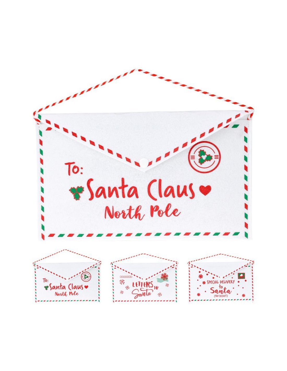 Ο χριστουγεννιάτικος φάκελος είναι ένα γιορτινό αξεσουάρ που μπορεί να χρησιμοποιηθεί για διακοσμητικούς σκοπούς ή για την αποστολή επιστολών προς τον Άγιο Βασίλη. Τα σχέδια περιλαμβάνουν χαρακτηριστικά χριστουγεννιάτικα μοτίβα, όπως χρώματα κόκκινο και λευκό, με κλασικές ευχές και διακόσμηση που παραπέμπει στην εορταστική ατμόσφαιρα. Ιδανικό για διακόσμηση, καθώς έχει κρεμασταράκι, ή για δραστηριότητες με παιδιά, καθώς δίνει τη δυνατότητα να γράψουν τις ευχές τους και να τις "στείλουν" στον Βόρειο Πόλο! Διαστάσεις: 27x16εκ.