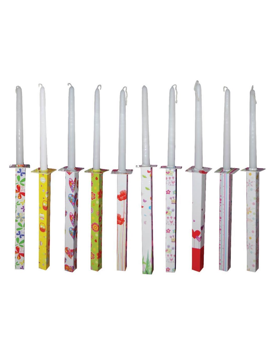 Λαμπάδα διακοσμημένη λευκή με κηροστάτη 44εκ. Κοκτέηλ σχεδίων.