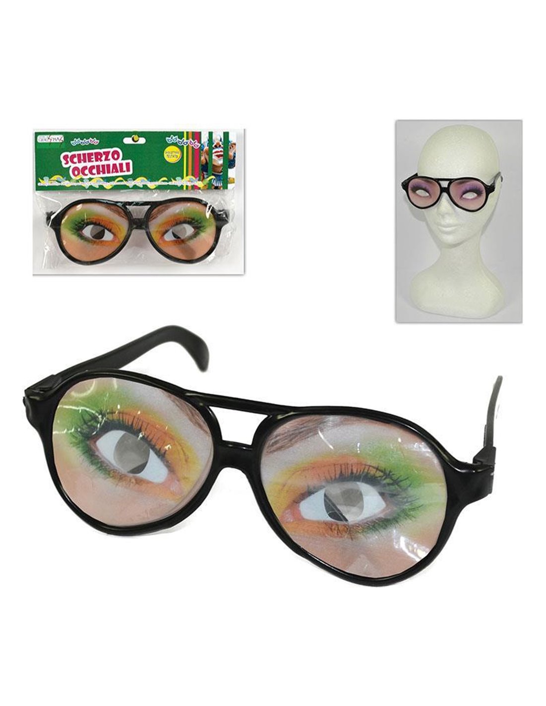Γυαλιά με πλαστικό σκελετό για αστείες μεταμφιέσεις. Μήκος σκελετού 14 εκ.