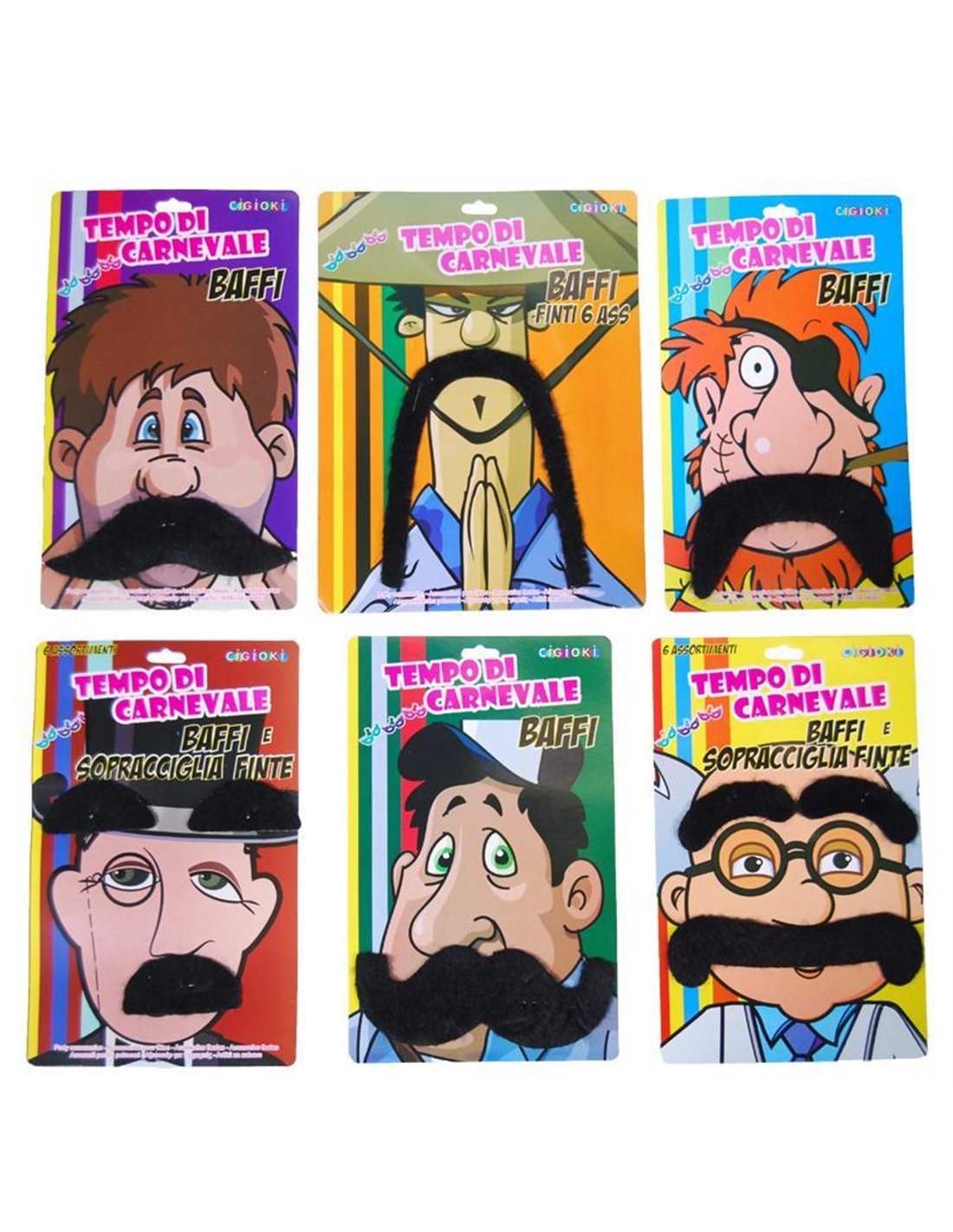 Μουστάκια για μεταμφιέσεις σε 6 σχέδια. Κάθε σχέδιο είναι συσκευασμένο σε blister διάστασης 17x21εκ..