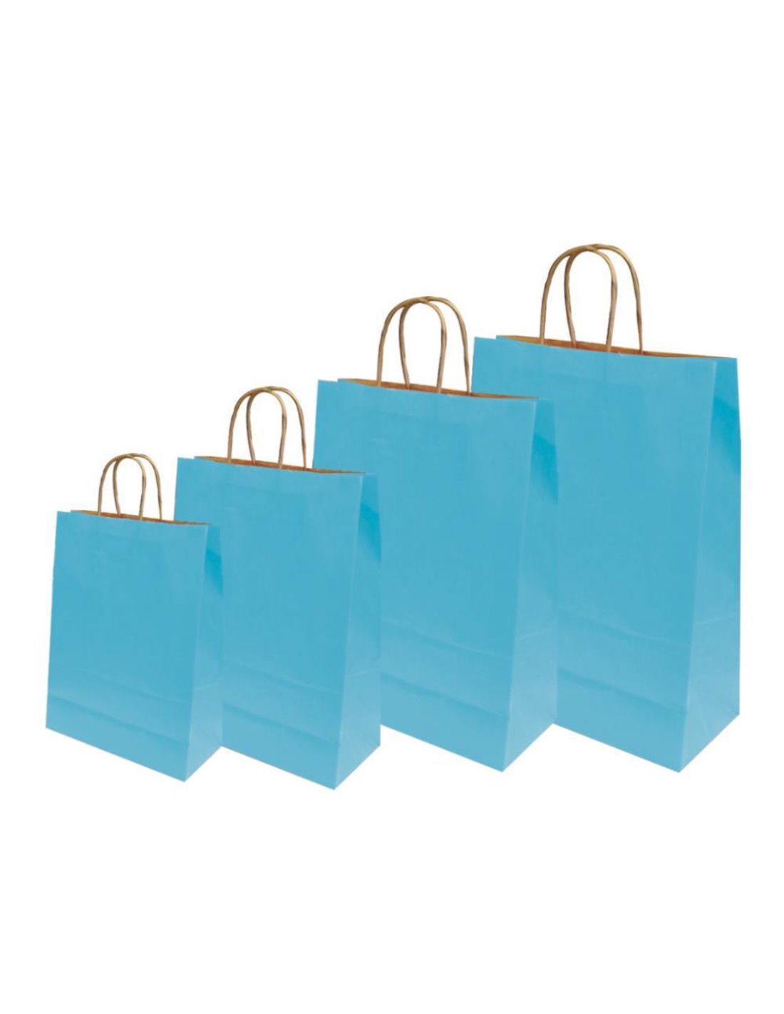 Χάρτινη τσάντα με στριφτό χερούλι. Σε γαλάζιο χρώμα. Διαστάσεις: Υ41xΠ32x12εκ. Δυνατότητα προσωποποίησης για διαφημιστικό, δείτε φωτογραφία.