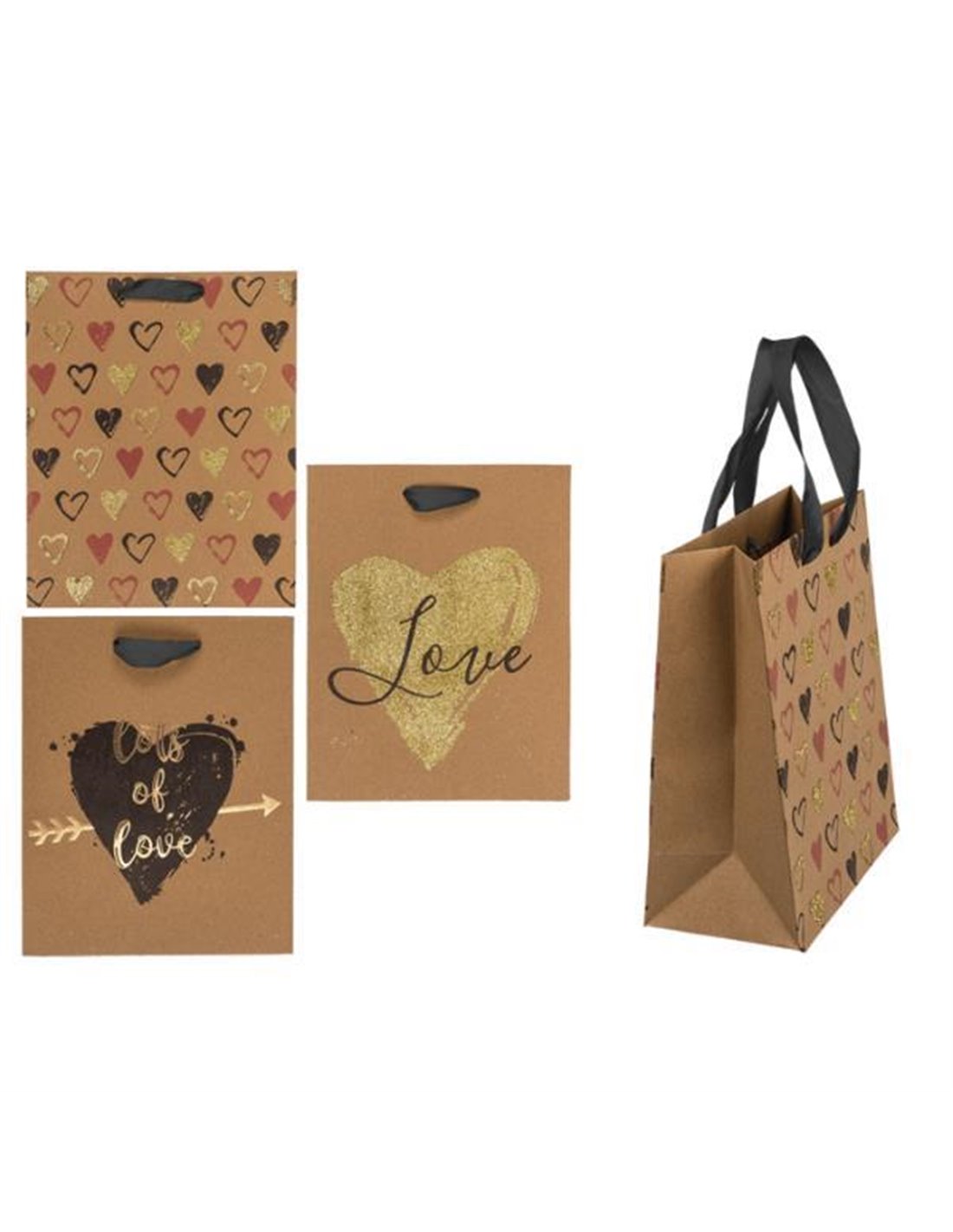 Χάρτινες τσάντες κραφτ με καρδιές, κοκτέηλ 3 σχέδια Υ23x18x10εκ.
