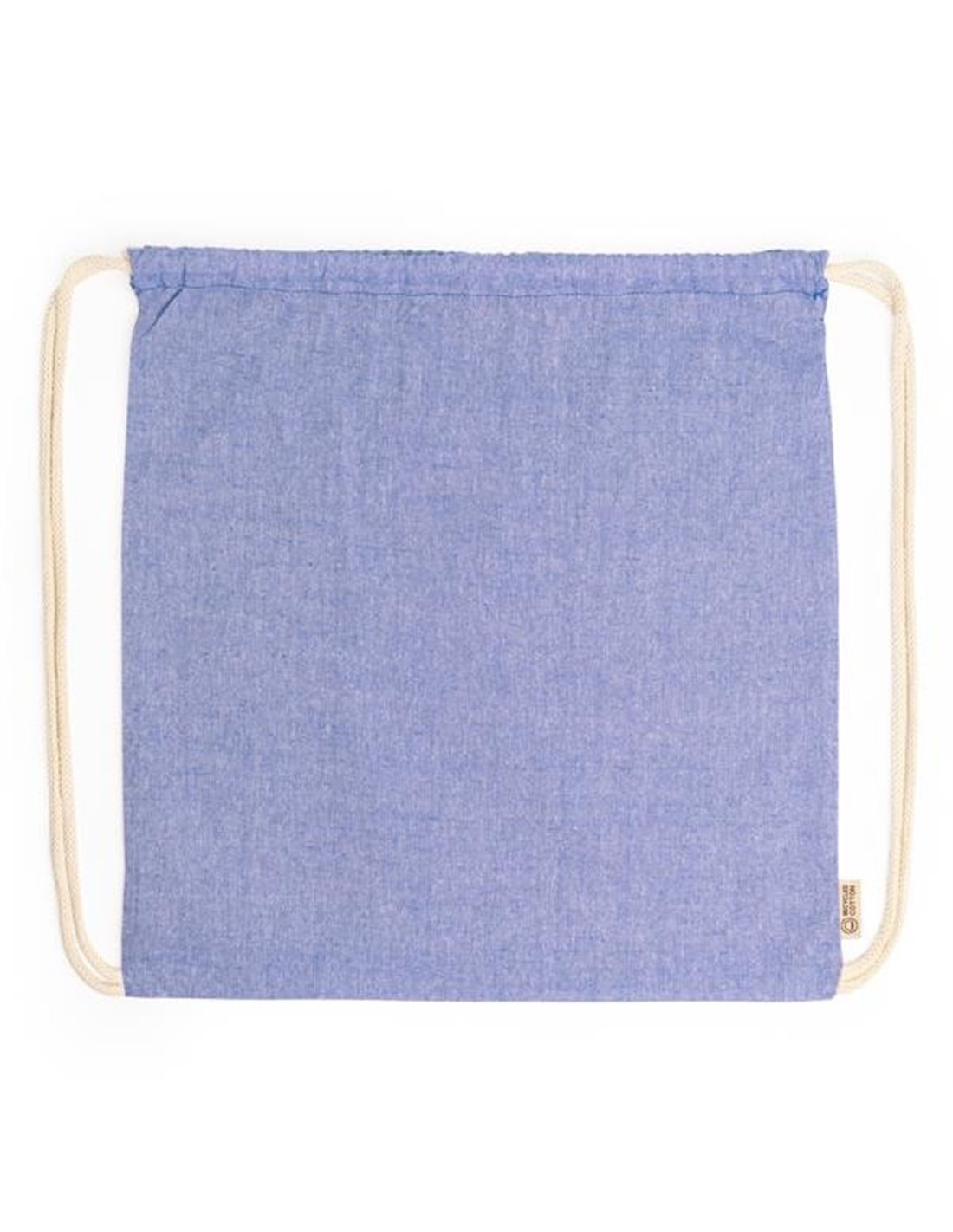 Τσάντα πλάτης με κορδόνια,φτιαγμένη από ανακυλωμένο βαμβάκι. Ιδανική για ταξίδια, εκδρομές αλλά και το γυμναστήριο. Χρώμα: μπλε Διαστάσεις 38x42εκ. Δυνατότητα προσωποποίησης για διαφημιστικό, δείτε φωτογραφία.