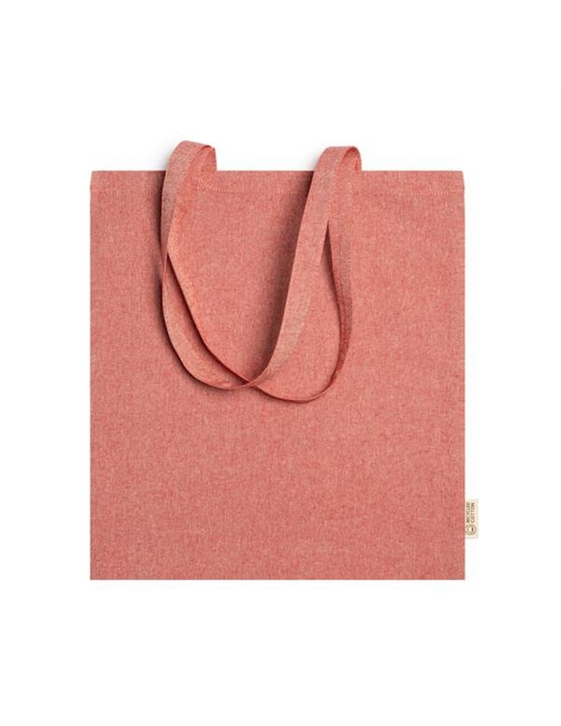 Τσάντα με μακρύ χερούλι, φτιαγμένη από ανακυλωμένο βαμβάκι. Ιδανική για ψώνια. Χρώμα: κόκκινο Διαστάσεις 38x42εκ. Δυνατότητα προσωποποίησης για διαφημιστικό, δείτε φωτογραφία.