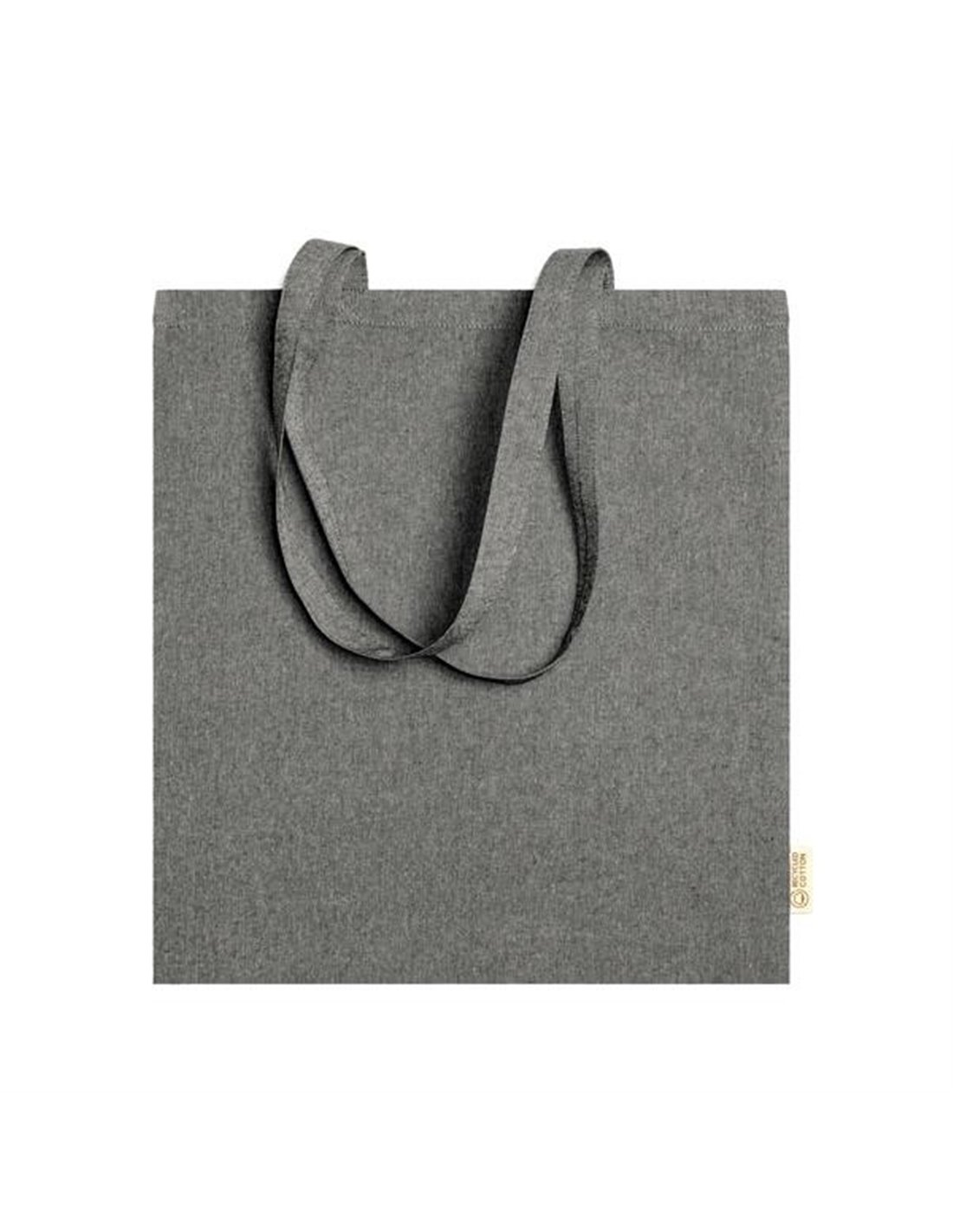 Τσάντα με μακρύ χερούλι, φτιαγμένη από ανακυλωμένο βαμβάκι. Ιδανική για ψώνια. Χρώμα: μαύρο Διαστάσεις 38x42εκ. Δυνατότητα προσωποποίησης για διαφημιστικό, δείτε φωτογραφία.