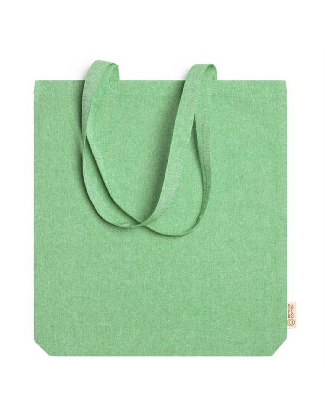Τσάντα με μακρύ χερούλι, φτιαγμένη από ανακυλωμένο βαμβάκι. Ιδανική για ψώνια. Χρώμα: πράσινο Διαστάσεις 38x8,5x42εκ. Δυνατότητα προσωποποίησης για διαφημιστικό, δείτε φωτογραφία.