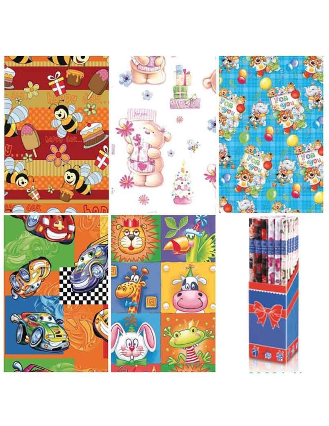 Χαρτί περιτυλίγματος ρολό "παιδικό μοτίβο" 60γρ. Κοκτέηλ 5 σχέδια. Διαστάσεις: 70x 200εκ.