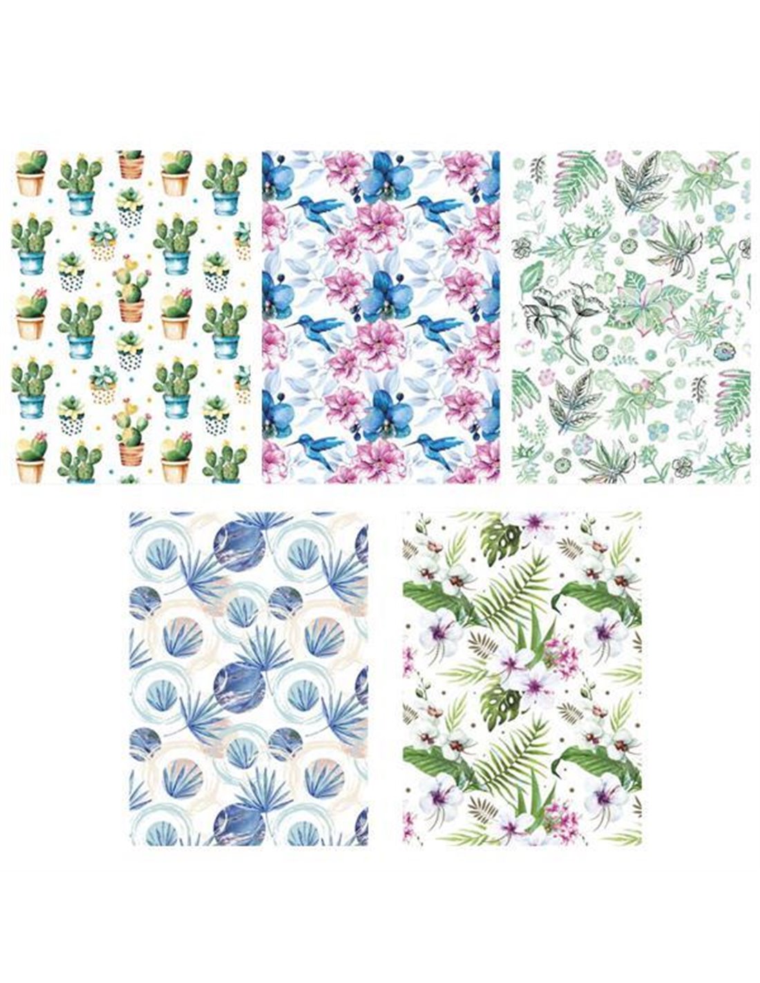Χαρτί περιτυλίγματος σε ρολό "εξωτικά λουλούδια". Κοκτέηλ 5 σχέδια. Διαστάσεις: 70x100εκ.