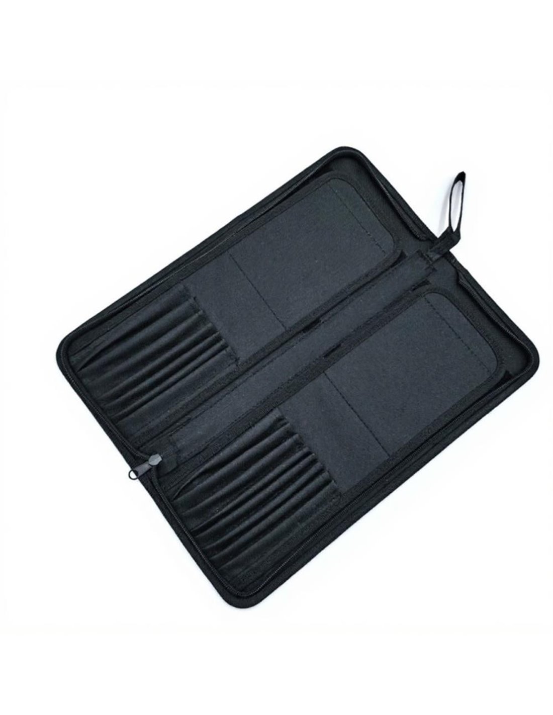 Διατήρησε τα πινέλα σου τακτοποιημένα και προστατευμένα με τη θήκη αποθήκευσης Nextdeco. Κατασκευασμένη από ανθεκτικό υλικό σε μαύρη απόχρωση, διαθέτει 15 θέσεις για ασφαλή τοποθέτηση πινέλων ζωγραφικής. Το φερμουάρ υψηλής ποιότητας εξασφαλίζει ασφαλές κλείσιμο, ενώ η κομψή σχεδίαση την καθιστά ιδανική για μεταφορά και αποθήκευση.
