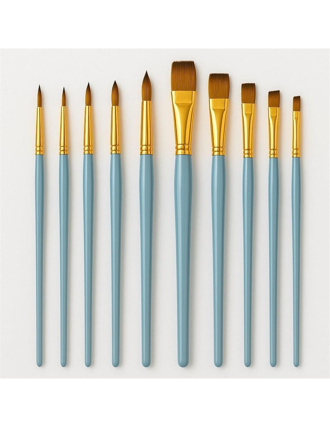 Ανακαλύψτε το ιδανικό σετ πινέλων ζωγραφικής για κάθε καλλιτεχνική εφαρμογή! Το σετ περιλαμβάνει 10 πινέλα με κοντή, εργονομική ξύλινη λαβή που προσφέρει άνετο κράτημα και απόλυτο έλεγχο στις πινελιές σας.