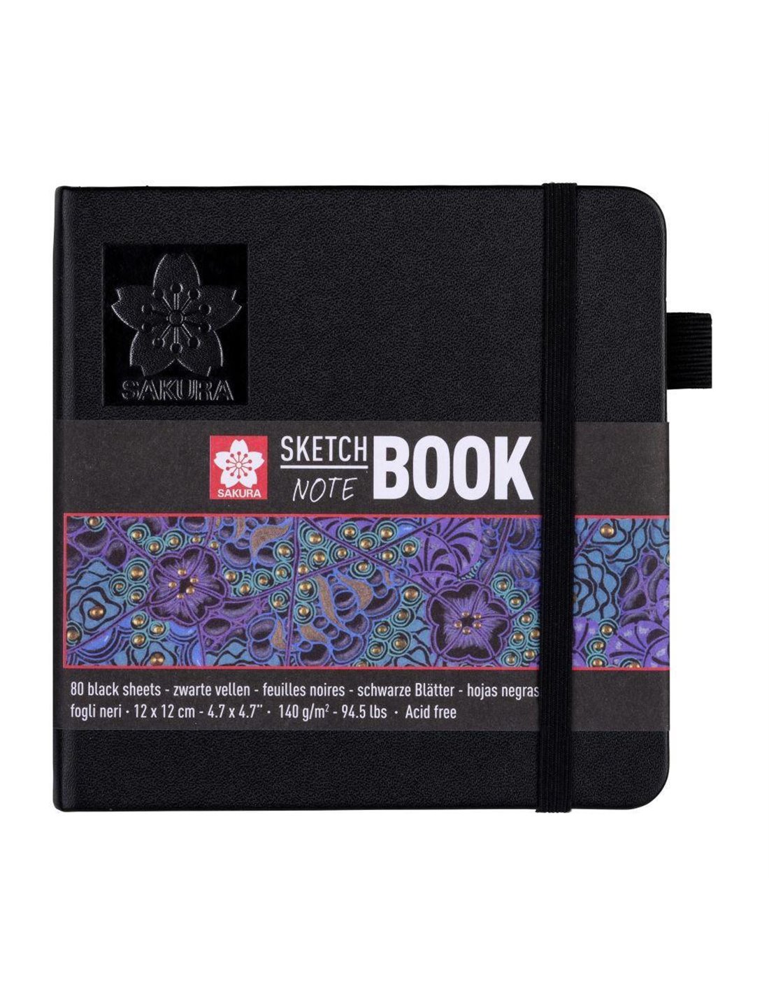 Το Sakura Sketch/Notebook με 80 μαύρα φύλλα χαρτιού, είναι κατάλληλο για όλες τις δημιουργίες σας με μελάνι, μολύβι, λαδοπαστέλ ή κάρβουνο. Η εικονογραφημένη εξωτερική φάσα του καλλιτέχνη Marieke Sanchez μπορεί να χρησιμοποιηθεί ως σελιδοδέίκτης. Το βιβλίο με σκληρό εξώφυλλο έχει θήκη για στυλό που ταιριάζει τέλεια για στυλό όπως το Pigma Micron και το Sakura Gelly Roll. Στο πίσω μέρος του Sketch – notebook περιλαμβάνεται ένας επεκτάσιμος φάκελος για την αποθήκευση σκίτσων και σημειώσεων. Το λάστιχο εξασφαλίζει ότι το βιβλίο παραμένει κλειστό όταν ταξιδεύετε. Sakura Sketch – τα σημειωματάρια είναι ιδανικά για σκίτσο και γραφή με προϊόντα Sakura: Pigma Micron, Pigma Brush, Koi Coloring Brush Pen, Gelly Roll, Permapaque και το αυθεντικό Cray-Pas. Διάσταση: 12x12 εκ. Χαρακτηριστικά χαρτιού: 140 g/m2, acid free