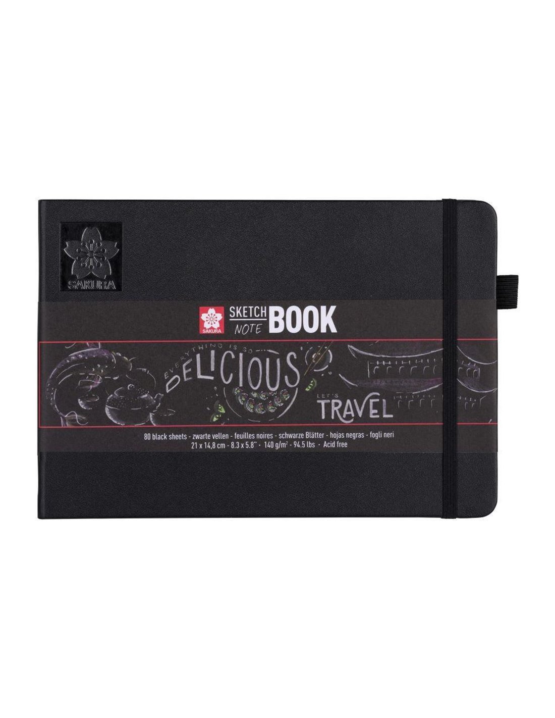 Το Sakura Sketch/Notebook με 80 μαύρα φύλλα χαρτιού, είναι κατάλληλο για όλες τις δημιουργίες σας με μελάνι, μολύβι, λαδοπαστέλ ή κάρβουνο. Η εικονογραφημένη εξωτερική φάσα του καλλιτέχνη Anne Jorinde (Gouden Lijntjes) μπορεί να χρησιμοποιηθεί ως σελιδοδέίκτης. Το βιβλίο με σκληρό εξώφυλλο έχει θήκη για στυλό που ταιριάζει τέλεια για στυλό όπως το Pigma Micron και το Sakura Gelly Roll. Στο πίσω μέρος του Sketch – notebook περιλαμβάνεται ένας επεκτάσιμος φάκελος για την αποθήκευση σκίτσων και σημειώσεων. Το λάστιχο εξασφαλίζει ότι το βιβλίο παραμένει κλειστό όταν ταξιδεύετε. Sakura Sketch – τα σημειωματάρια είναι ιδανικά για σκίτσο και γραφή με προϊόντα Sakura: Pigma Micron, Pigma Brush, Koi Coloring Brush Pen, Gelly Roll, Permapaque και το αυθεντικό Cray-Pas. Διάσταση: 21x14,8 εκ. Χαρακτηριστικά χαρτιού: 140 g/m2, acid free