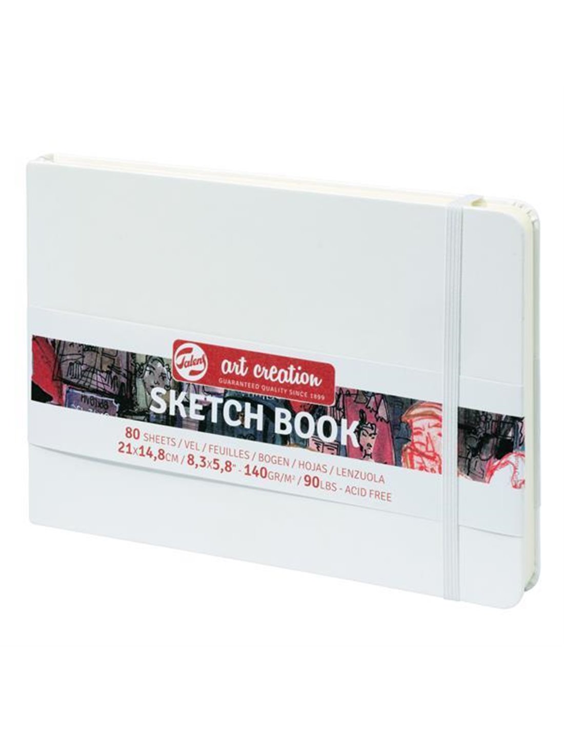 Talens art creation scetch book με λάστιχο. Περιέχει 80 φύλλα. 140gr/m² . Διαστάσεις: 21x15εκ. Χρώμα: Λευκό.