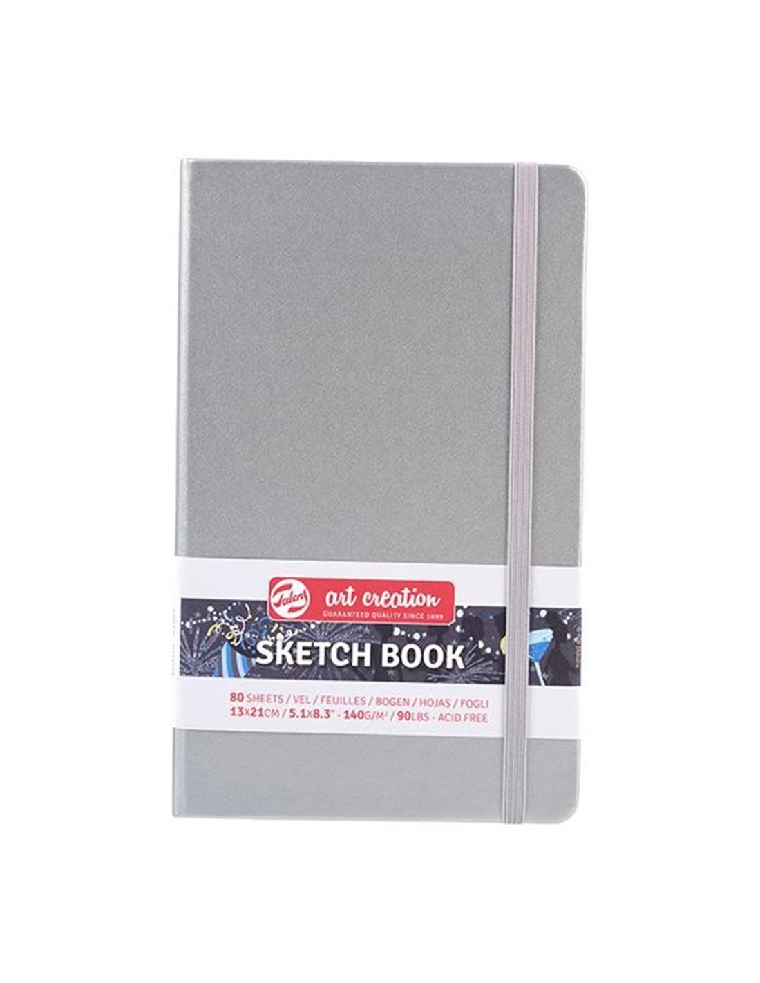 Talens art creation sketch book με λάστιχο. Περιέχει 80 φύλλα 140gr/m² . Διαστάσεις: 13x21εκ. Χρώμα: ασημί