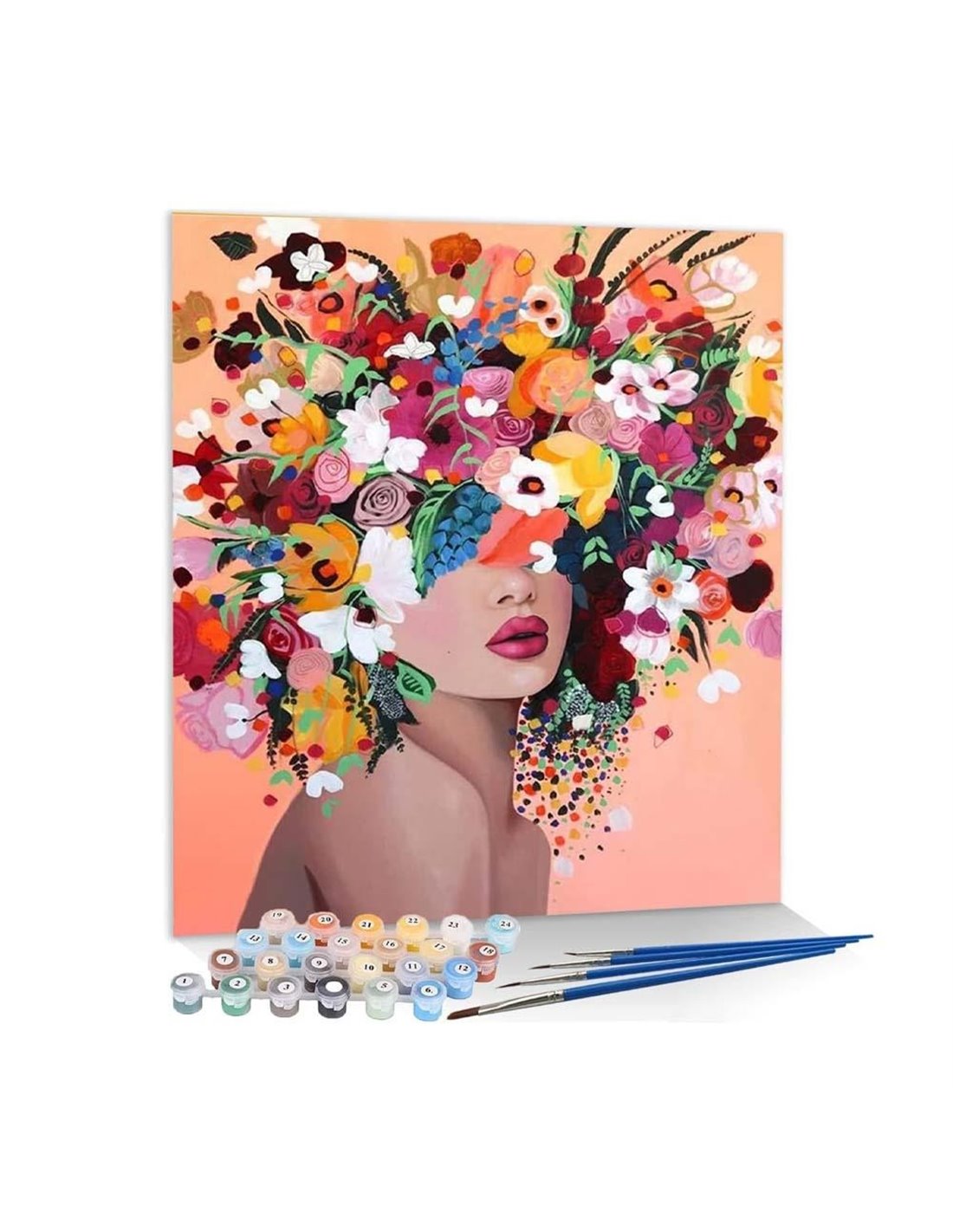 Εντυπωσιακό σετ ζωγραφικής με αριθμούς για ενήλικες, με καμβά μεγέθους 40x50εκ. και θέμα γυναικείο πορτρέτο με λουλούδια. Ιδανικό για δημιουργική χαλάρωση, δώρο ή σύγχρονη διακόσμηση τοίχου.