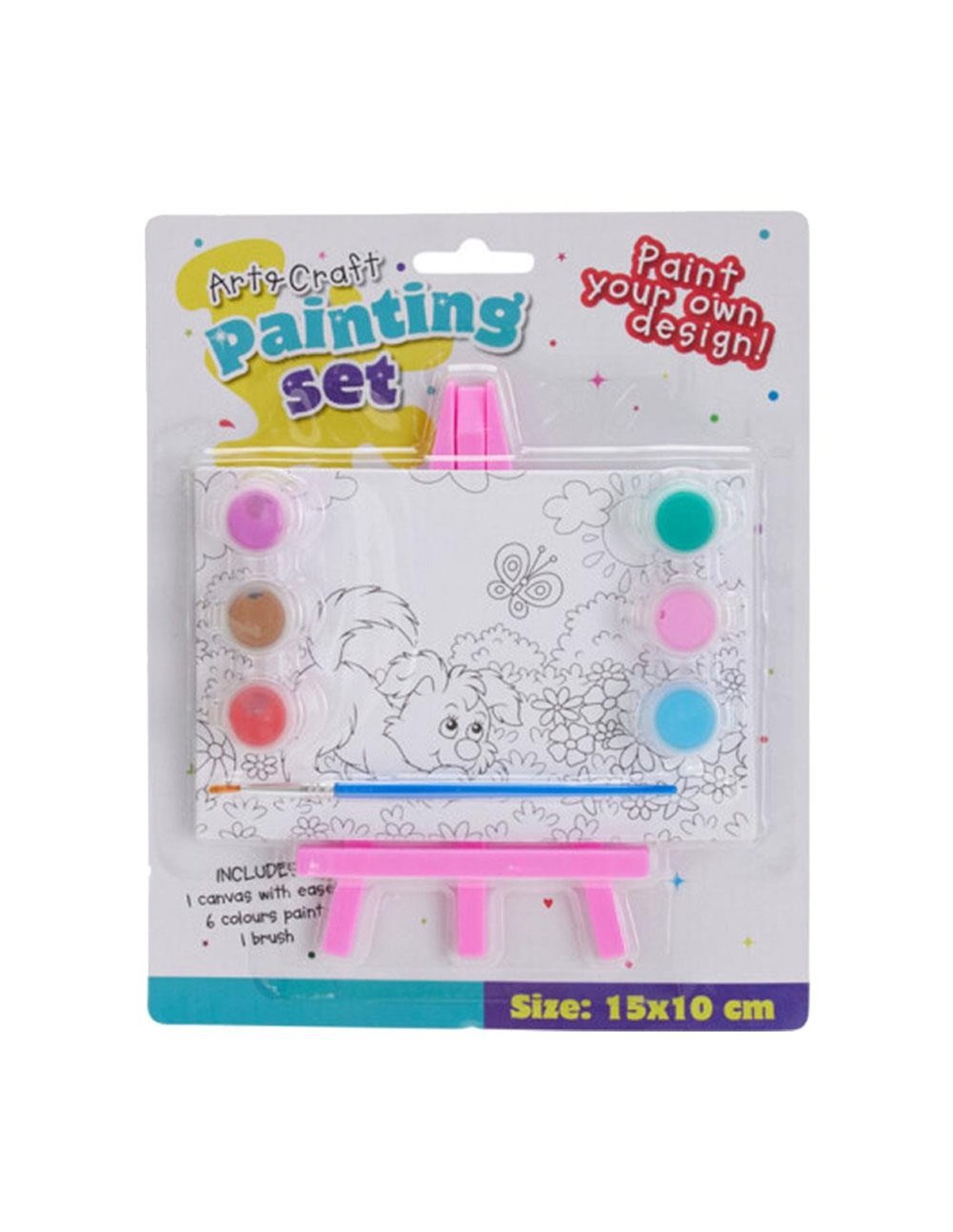 Ανακαλύψτε τη δημιουργικότητα με αυτό το ολοκληρωμένο μίνι σετ ζωγραφικής! Περιλαμβάνει καμβά, καβαλέτο, πινέλο και 6 ζωηρά χρώματα για ατελείωτη έμπνευση. Ιδανικό για παιδιά, εφήβους ή και ενήλικες που αγαπούν τις κατασκευές και τη ζωγραφική.