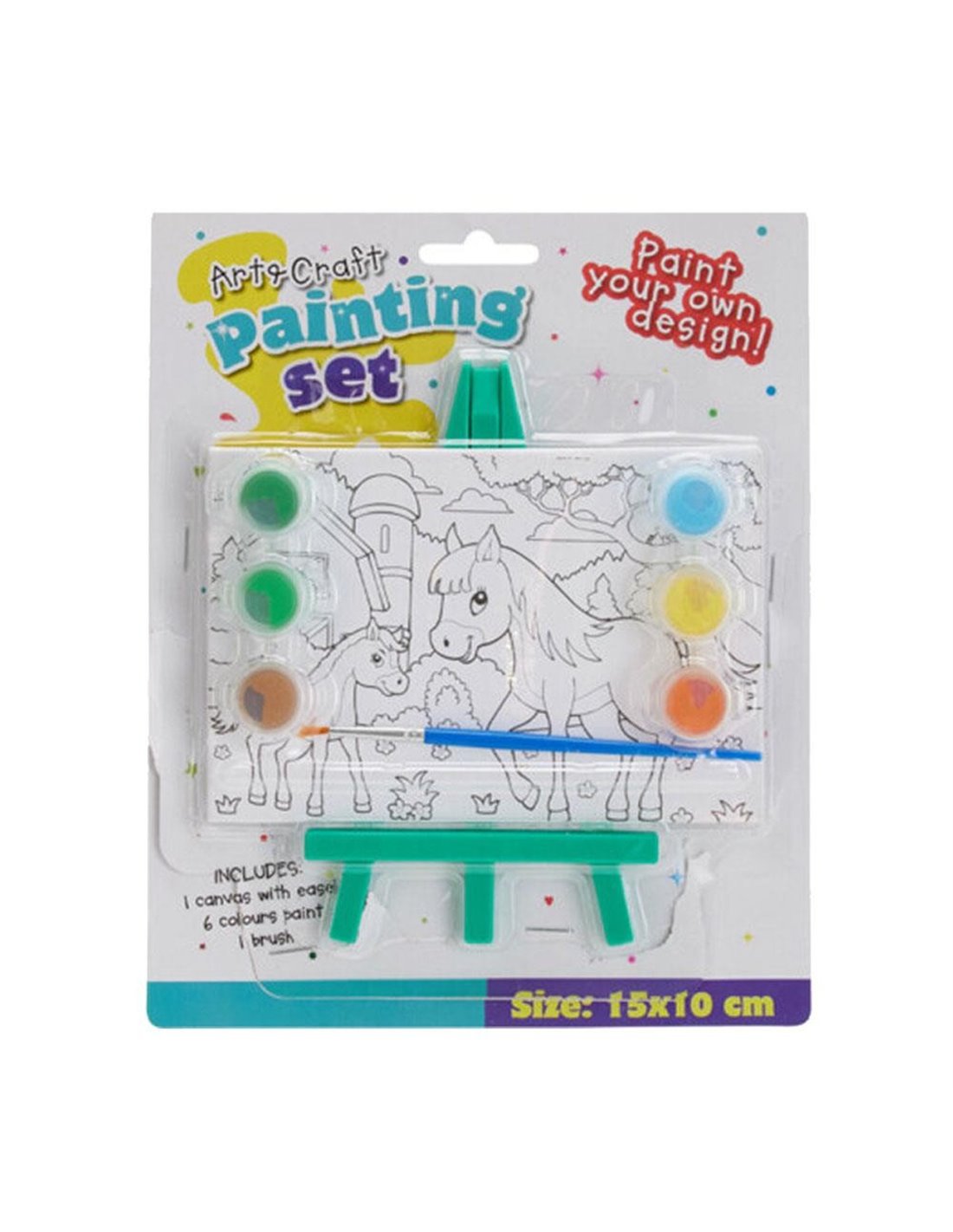 Ανακαλύψτε τη δημιουργικότητα με αυτό το ολοκληρωμένο μίνι σετ ζωγραφικής! Περιλαμβάνει καμβά, καβαλέτο, πινέλο και 6 ζωηρά χρώματα για ατελείωτη έμπνευση. Ιδανικό για παιδιά, εφήβους ή και ενήλικες που αγαπούν τις κατασκευές και τη ζωγραφική.